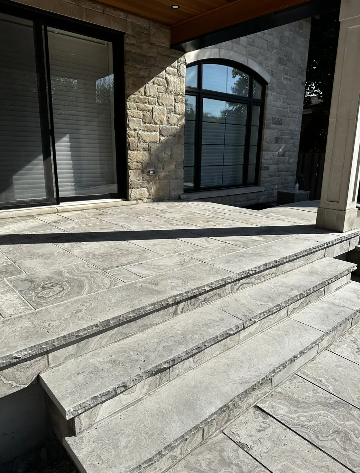Interlocking pavers made of concrete are among the most preferred. Choosing concrete pavers to interlock a patio provides many benefits since this material allows customization, as you can select different colours and shapes when considering the patio pavers you would like to apply in your design. Another advantage of the interlocking patio pavers is they are easy to replace/fix and have superior stability. Check our concrete services to find out additional information about this type of interlocking pavers and how you can use them for your backyard interlock project.Stone